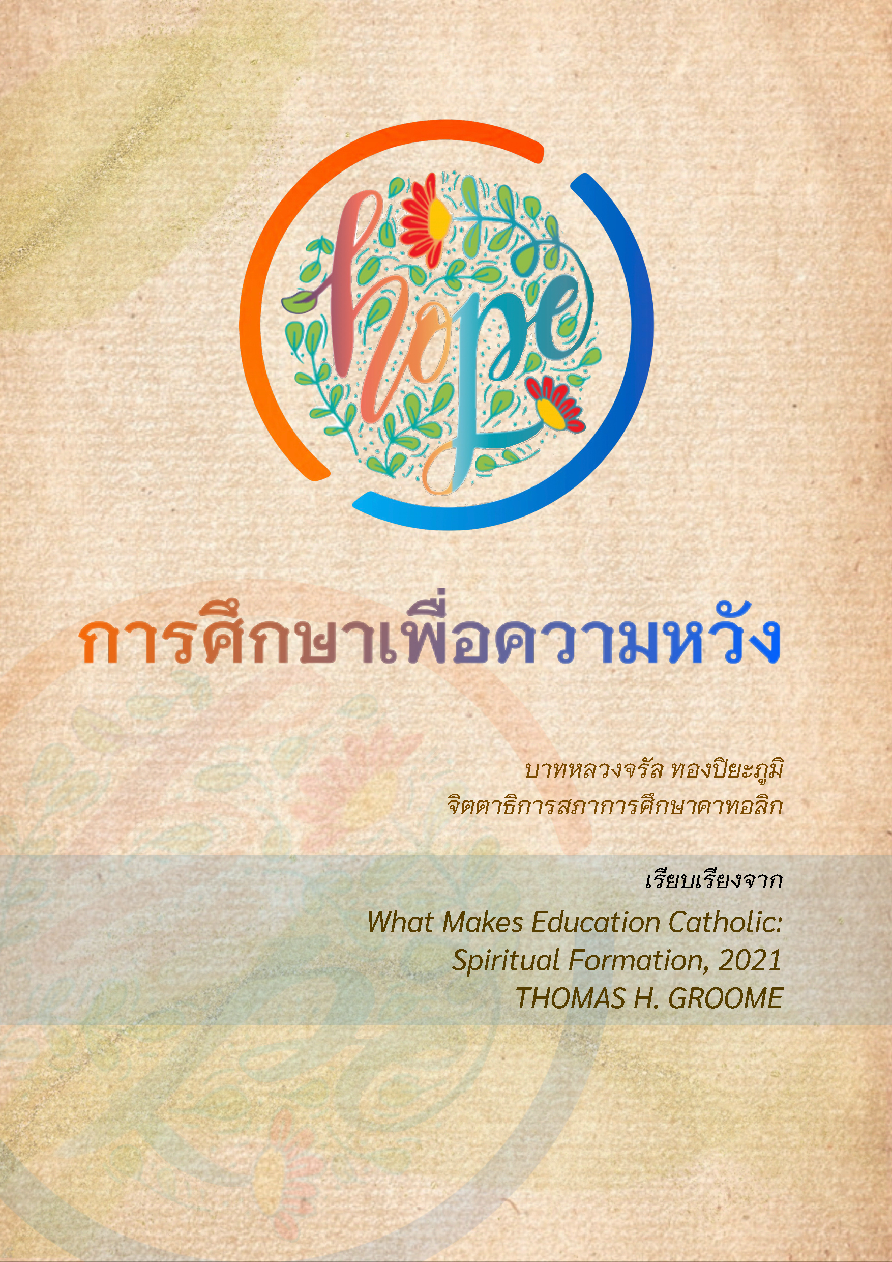 “เนื่องด้วยพระศาสนจักรคาทอลิกได้กำหนดหัวข้อปีศักดิ์สิทธิ์ 2025 เป็น ”การจาริกแห่งความหวัง“ จิตตาธิการสภาการศึกษาคาทอลิกฯ ได้จัดทำเอกสาร “การศึกษาเพื่อความหวัง” ซึ่งเรียบเรียงจาก What Makes Education Catholic: Spiritual Formation, 2021, โดย THOMAS H. GROOME เพื่อช่วยให้บุคคลากรในสถาบันการศึกษาคาทอลิกเรียนรู้จิตตารมณ์ของการร่วมเดินทางกับนักเรียน นักศึกษา ในสถาบันของเรา“