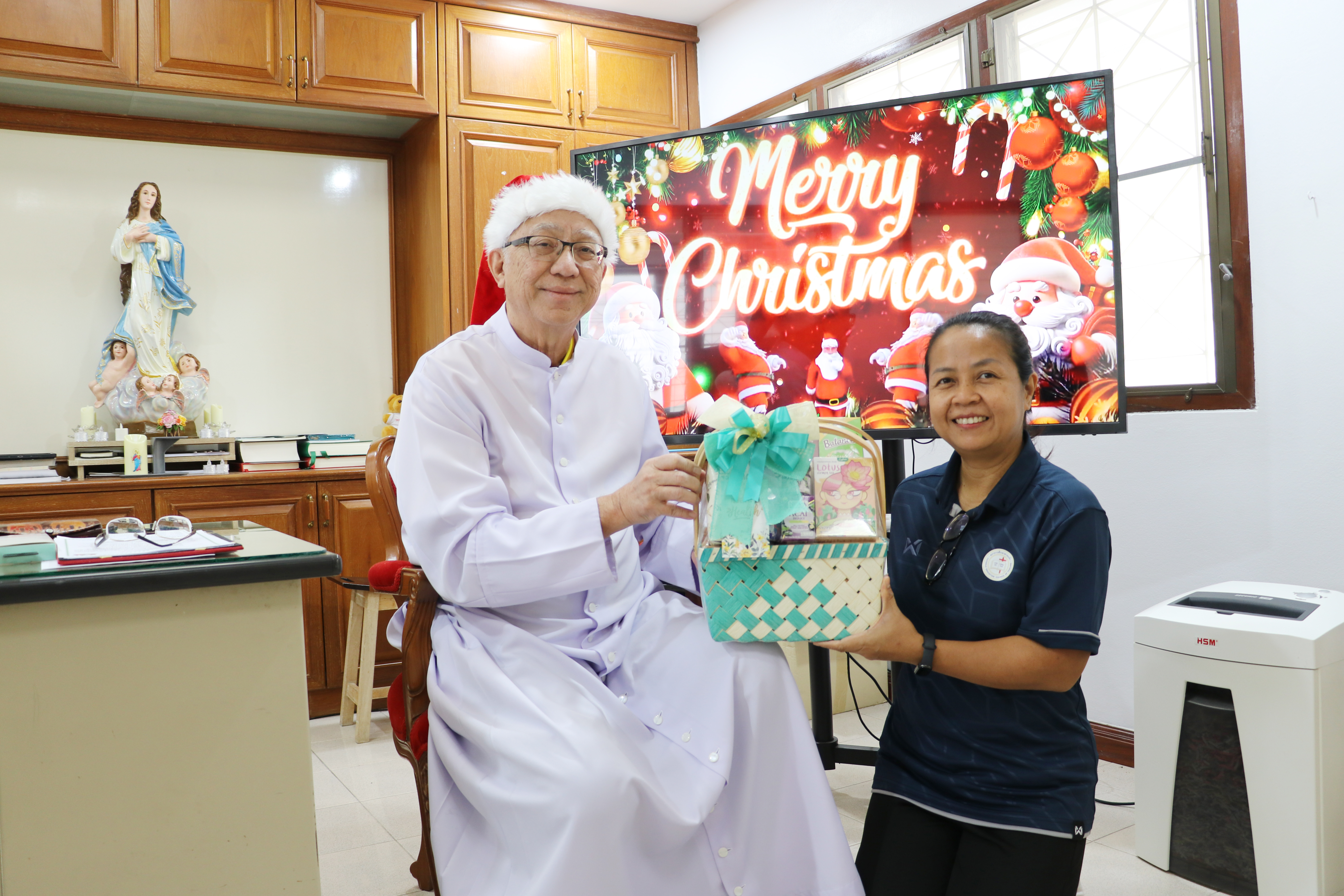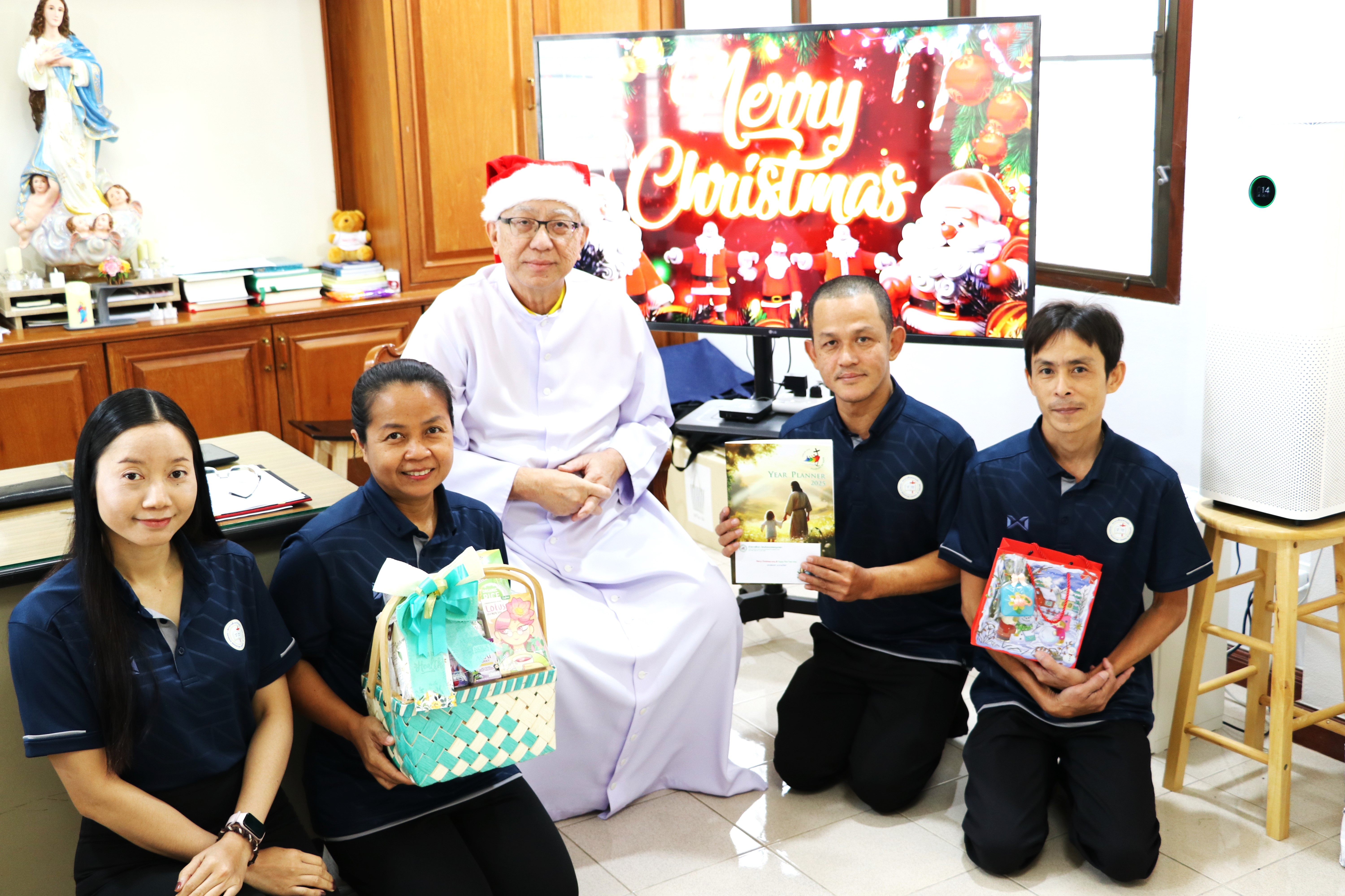 เจ้าหน้าที่สภาการศึกษาคาทอลิกฯ และฝ่ายการศึกษาฯ ส่งมอบความสุขในโอกาสแห่งความรัก ความชื่นชมยินดีในวันคริสต์มาสและสวัสดีปีใหม่ 2025 แด่ บาทหลวงเดชา อาภรณ์รัตน์ ที่ปรึกษาคณะกรรมการสภาการศึกษาคาทอลิกฯ