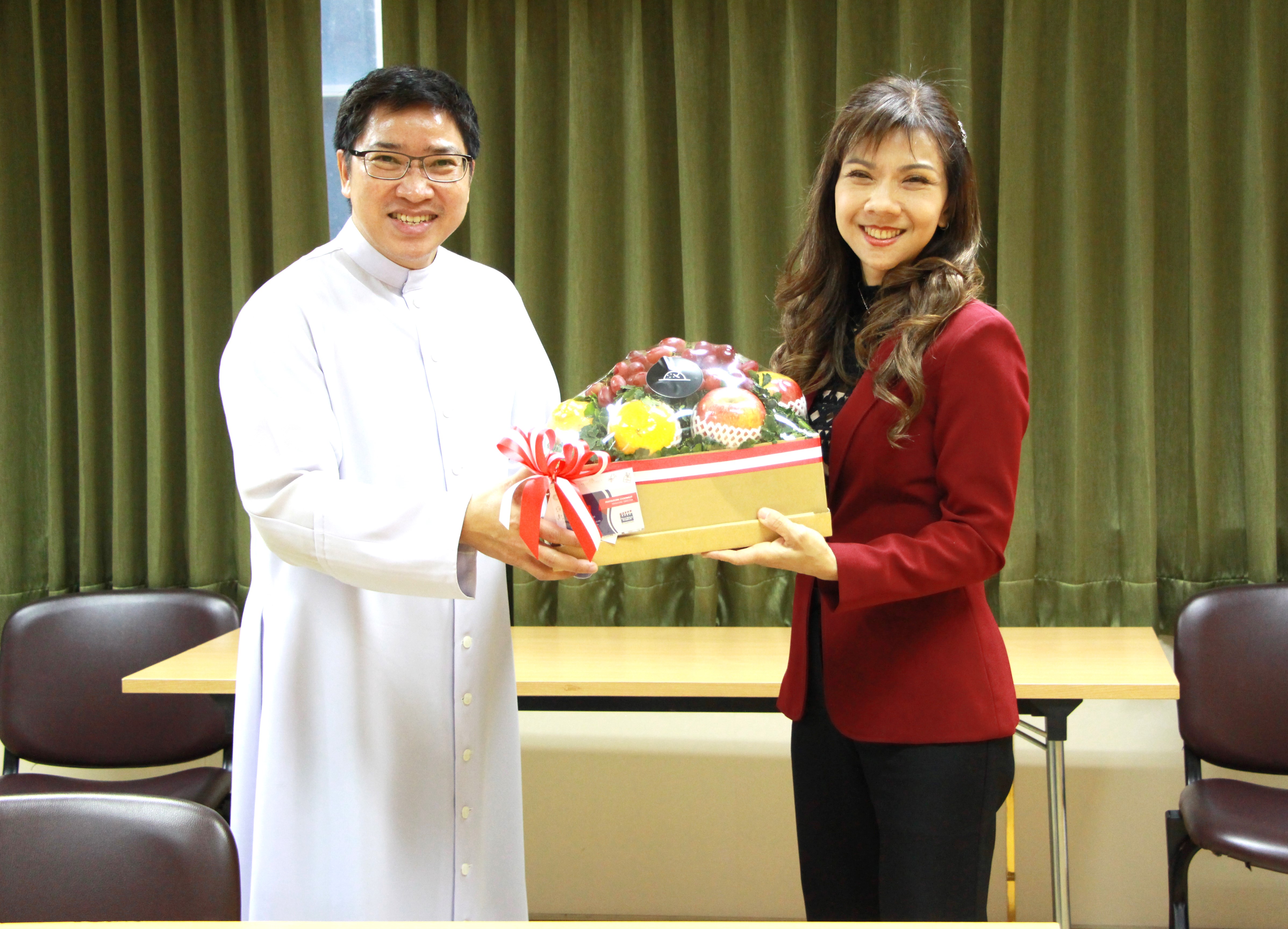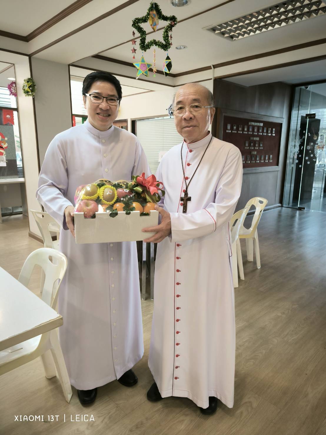บาทหลวงเอกรัตน์ หอมประทุม ผู้อำนวยการฝ่ายการศึกษาฯ/เลขาธิการสภาการศึกษาคาทอลิกฯ มอบของขวัญสวัสดีปีใหม่ แด่ พระคุณเจ้ายอแซฟ วุฒิเลิศ แห่ล้อม มุขนายกประจำเขตมิสซังเชียงราย โอกาสวันคริสต์มาสและสวัสดีปีใหม่ 2025