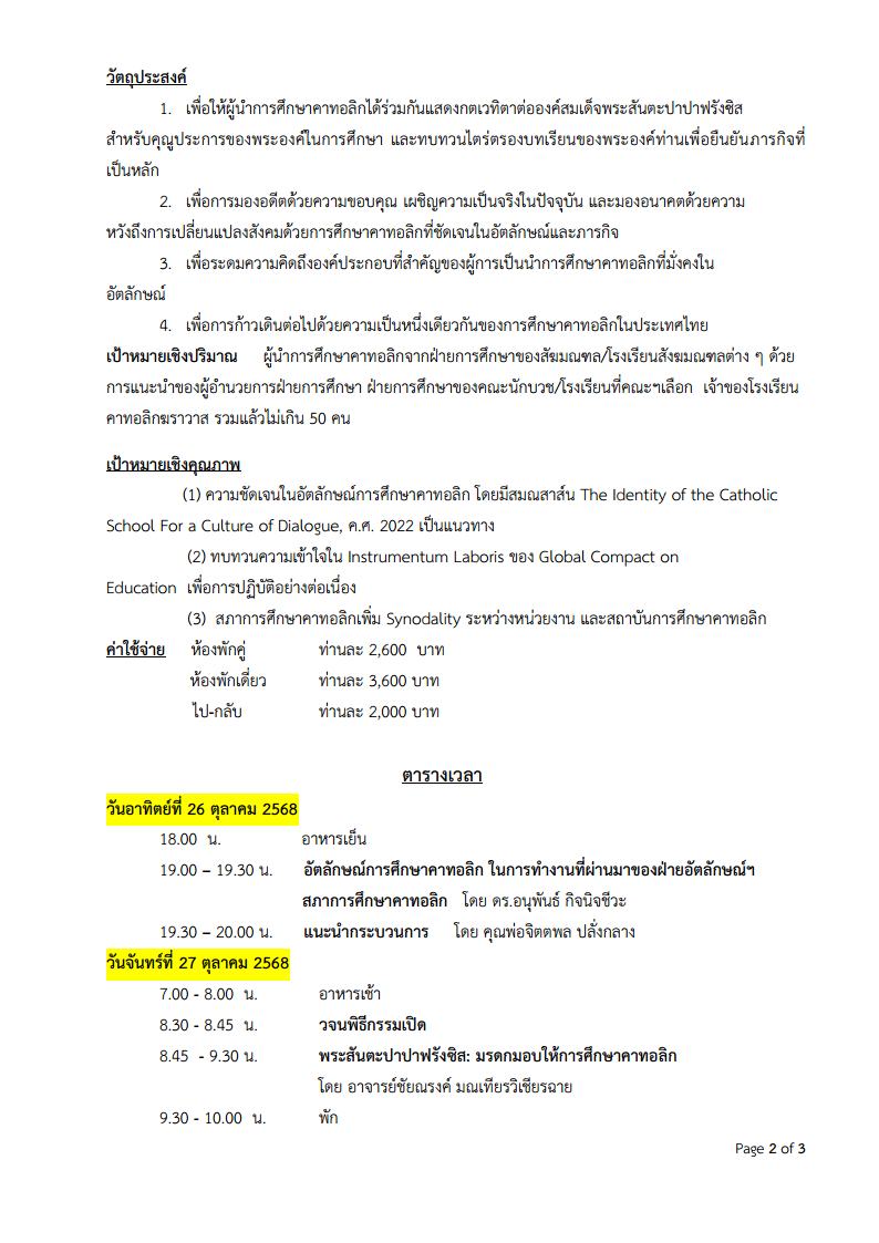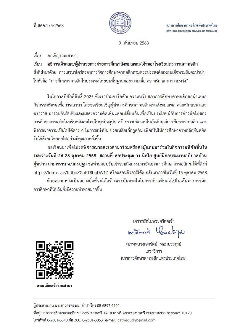 ขอเรียนเชิญ อธิการเจ้าคณะนักบวช ผู้อำนวยการฝ่ายการศึกษาสังฆมณฑล