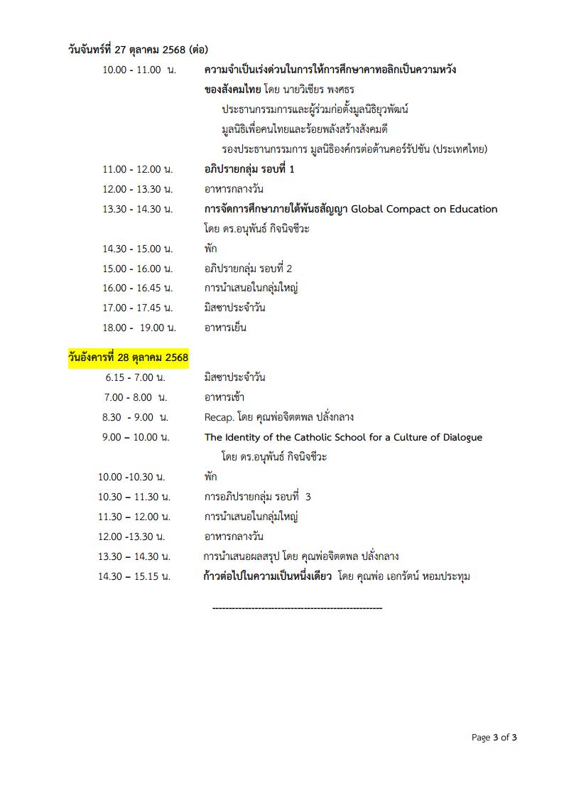 ในหัวข้อ "การศึกษาคาทอลิกในประเทศไทยบนพื้นฐานของความเชื่อ ความรัก และ ความหวัง"