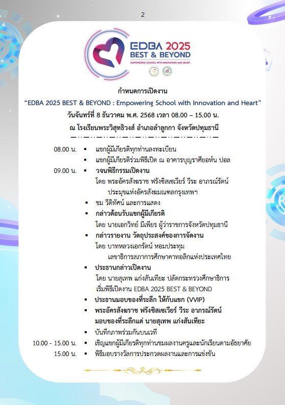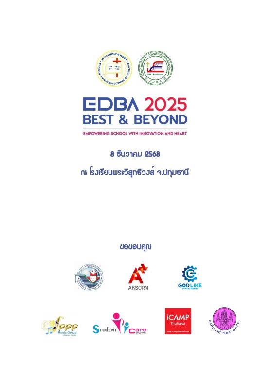 รวม Best Practices ในงาน EDBA 2025 BEST & BEYOND วันที่ 8 ธันวาคม 2025 ณ โรงเรียนพระวิสุทธิวงส์ ปทุมธานี
