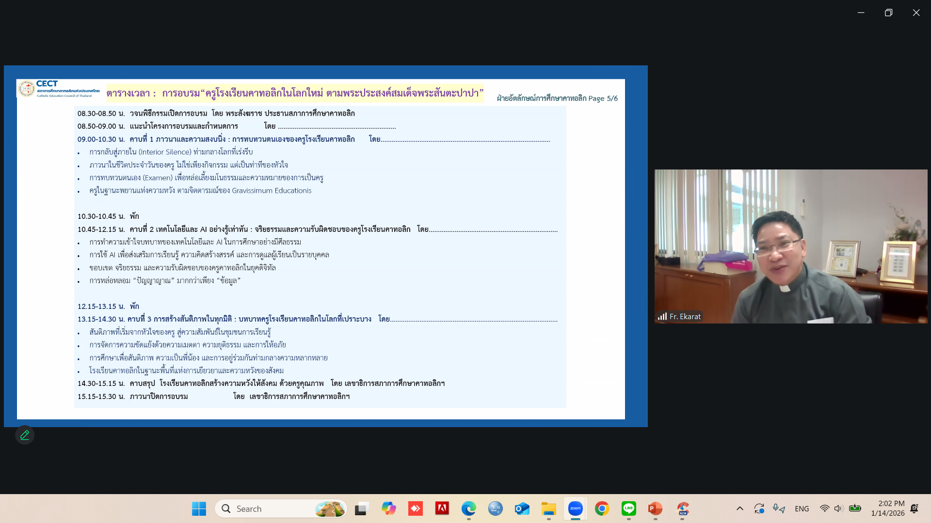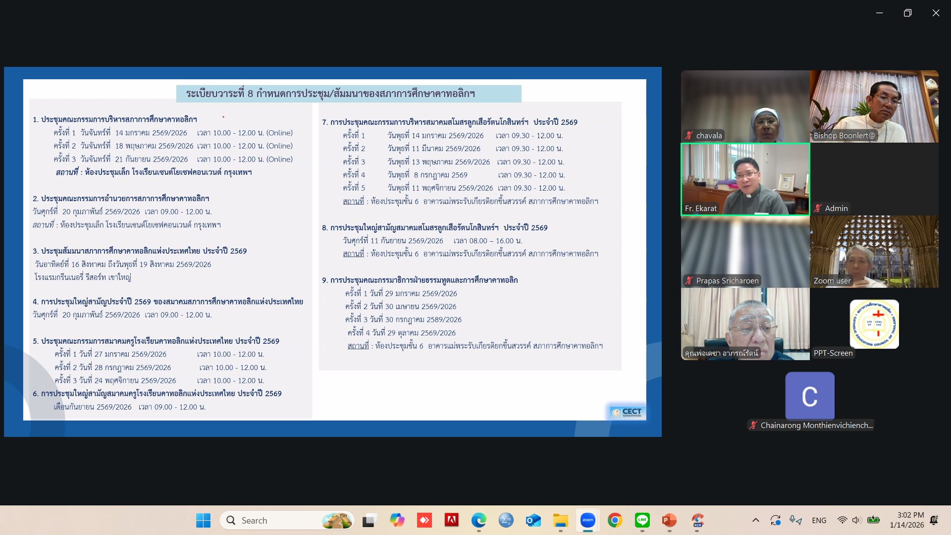 - พิจารณา (ร่าง) โครงการอบรมครูโรงเรียนคาทอลิกก่อนเปิดปีการศึกษา 2569 (ออนไลน์) หัวข้อ “ครูโรงเรียนคาทอลิกในโลกใหม่ ตามพระประสงค์สมเด็จพระสันตะปาปา”